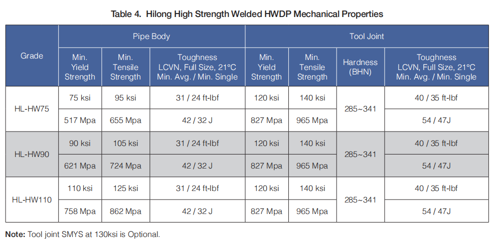 ·Welded HWDP includes standard strength HWDP, high strength HWDP, sour services HWDP, and Hilong premium connection HWDP.