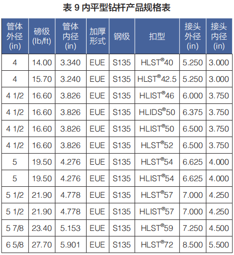 下面以 5 1/2" 21.9lb/ft S135 鉆桿為例給出內平型鉆桿與普通 API 鉆桿的比較: